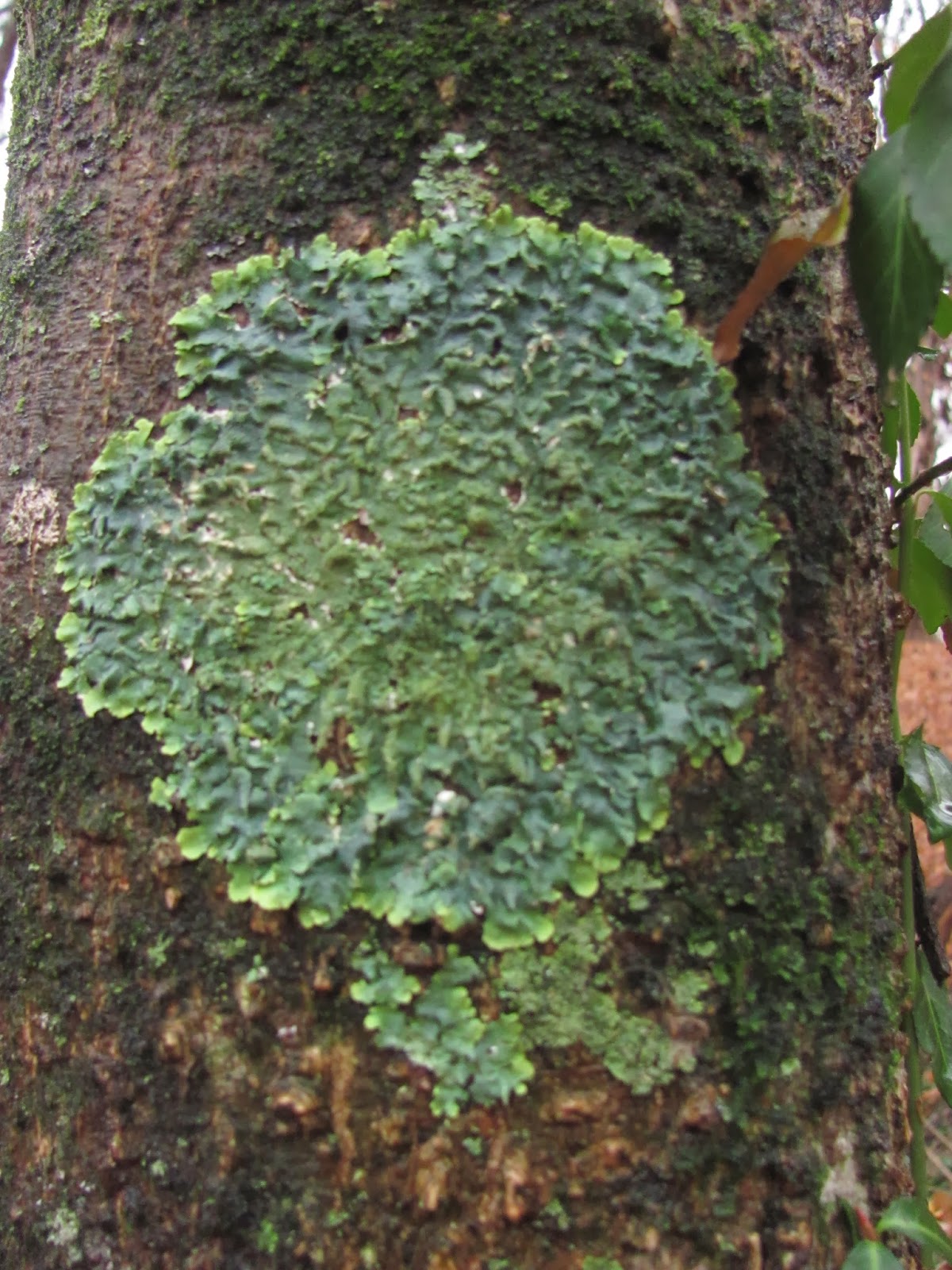 A great medallion of blue-green lichen decorates another